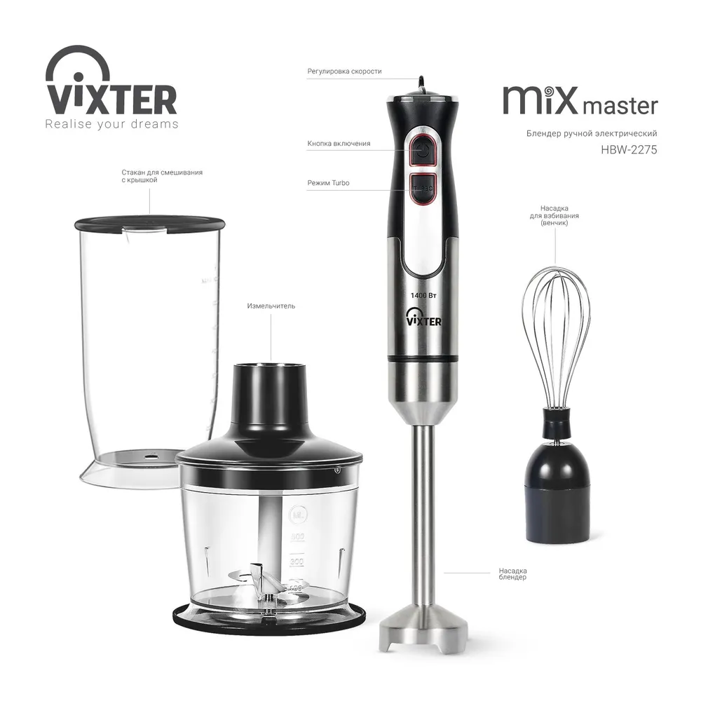 Мощность, Вт1400ТипБлендерОбъем чаши, л0.5Системы защитыЗащита от перегрузки (автоматический предохранитель)Количество скоростей2Емкости в комплектеИзмельчитель, Мерный стаканНасадки приборов для измельчения продуктовВенчик, Насадка-блендер, Чаша-измельчительРеверсНетПитаниеОт сетиМатериал погружной частиМеталл