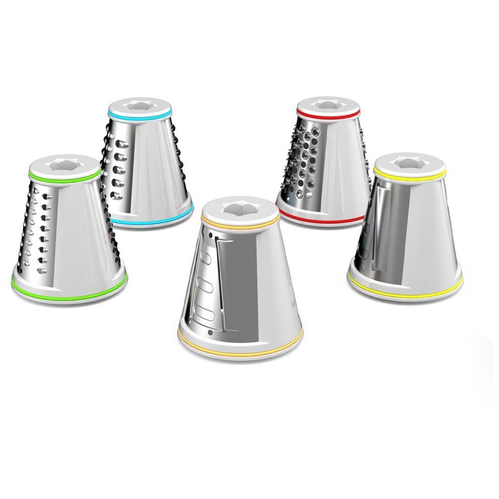 терка: 1 в комплекте, насадка для нарезки ломтиками: 4 в комплекте, общее число насадок: 5