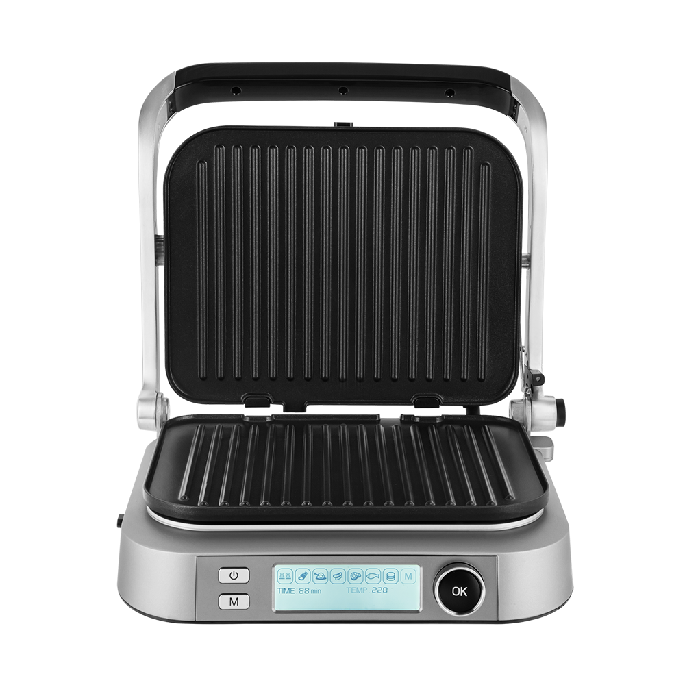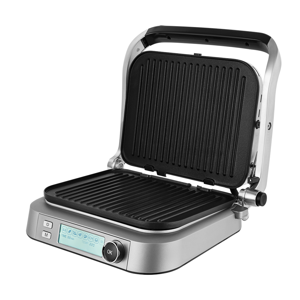 Приготовить идеальный стейк на плите не просто: процесс приходится постоянно контролировать, сверху мясо уже подгорает, а внутри может оказаться сырым. Готовя в SteakMaster подбирать параметры приготовления не нужно, достаточно выбрать одну из 7 встроенных автоматических программ: «Мясо», «Рыба», «Птица», «Бекон», «Сосиски», «Котлеты и бургеры», «Разморозка/разогрев». Гриль-духовка автоматически нагреется до предустановленной оптимальной температуры, и установит время приготовления исходя из толщины продукта.