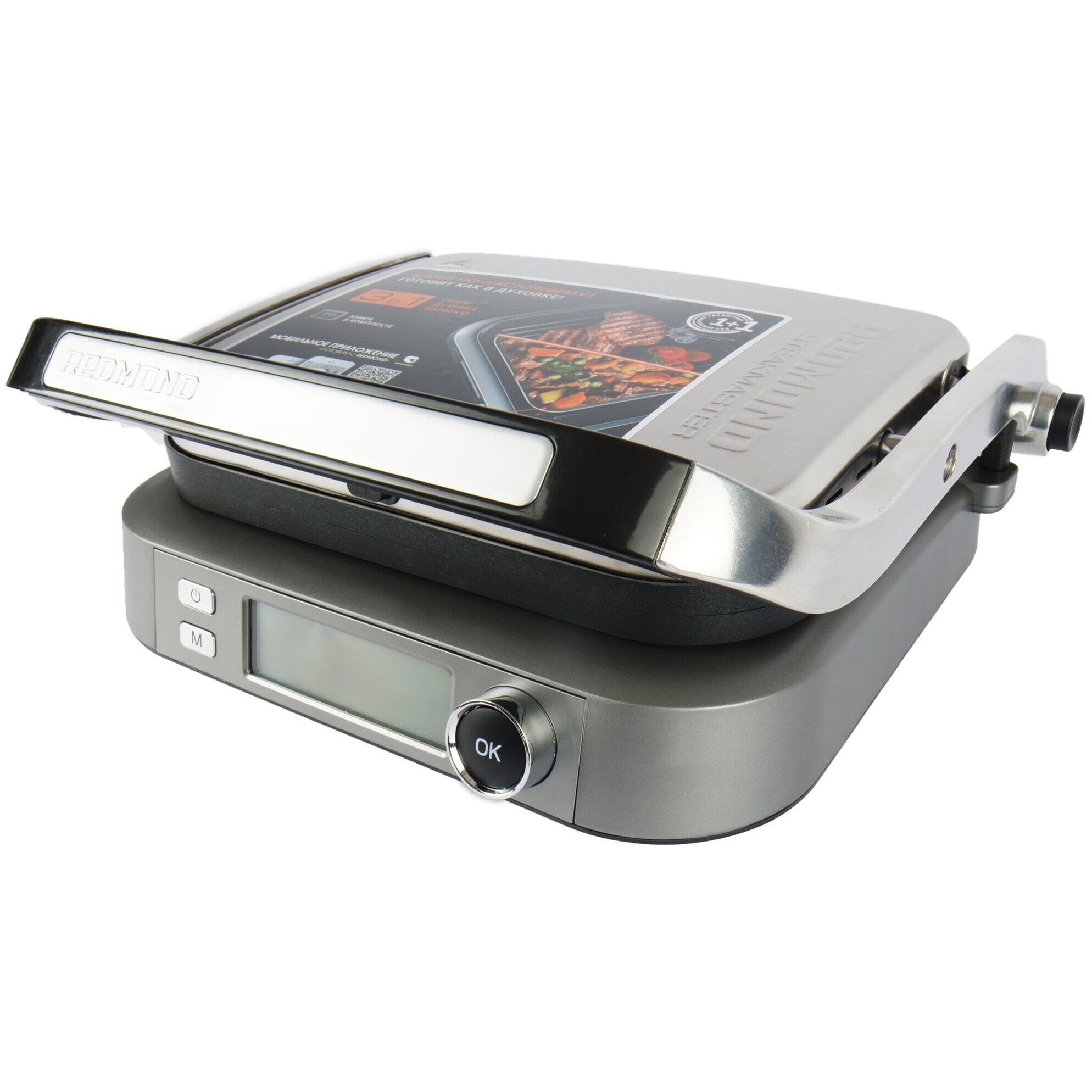 Электрогриль-духовка REDMOND Steak&Bake RGM-M816P черный/хром. Гриль-духовка REDMOND RGM-M816P – многофункциональное устройство «3 в 1», в котором можно жарить, запекать и готовить барбекю. Сочный стейк, рыба гриль, ароматный плов, жаркое и омлет: за счет мощного и равномерного нагрева ингредиентов одновременно снизу и сверху, любимые блюда в SteakMaster готовятся в 2 раза быстрее, чем на обычной плите или в духовке.