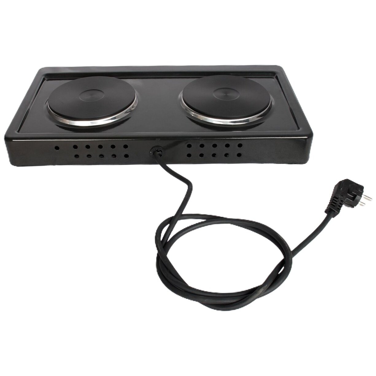 тип конфорок: чугунные; мощность каждой конфорки: 1 кВт, диаметр 14,5 см; бесступенчатое регулирование мощности; индикация включенного состояния электроконфорок; опорные ножки плитки оборудованы вкладышами противоскольжения; стеклоэмалевое покрытие; вес 4,5 кг