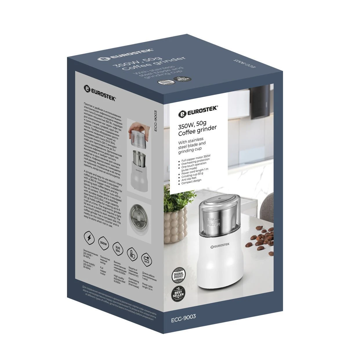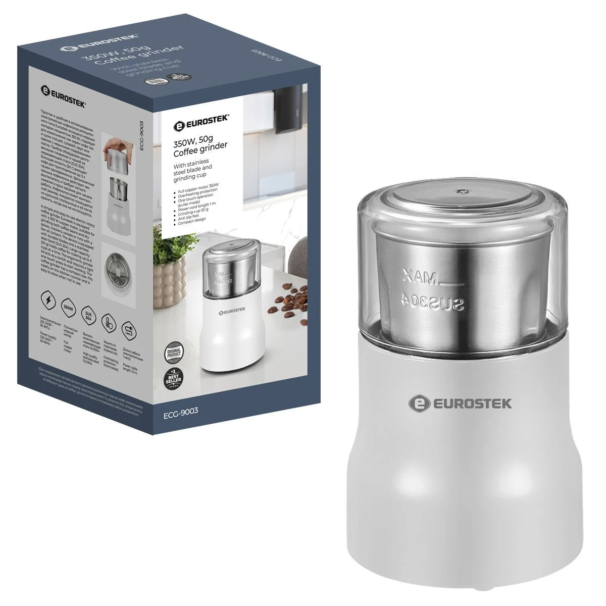 Кофемолка ECG-9003 проста и удобна в использовании. Подойдет для измельчения как зерен кофе так и сухих специй, сухарей, круп. мощность 350 Вт, объем 50 гр.