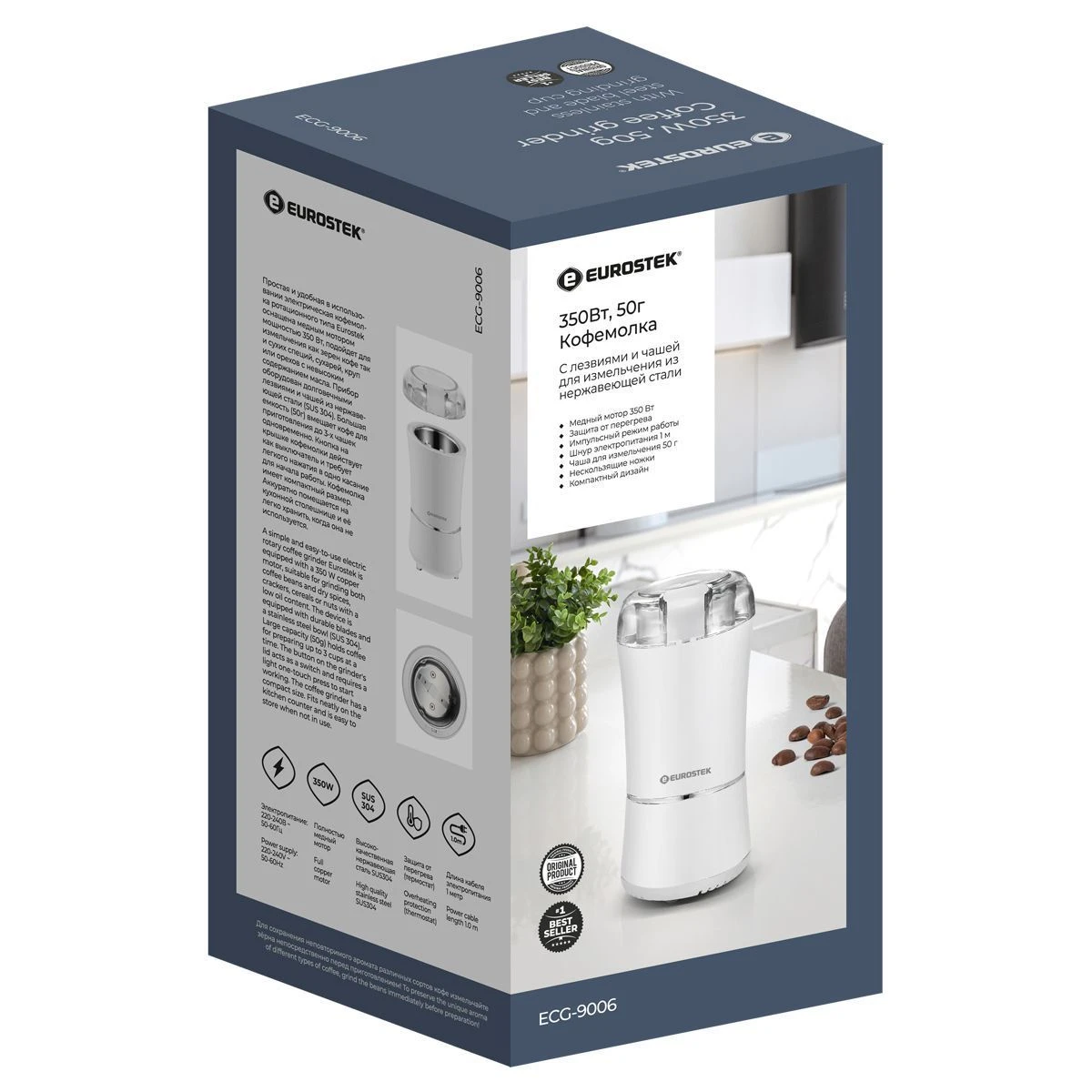 Кофемолка ECG-9006 проста и удобна в использовании.