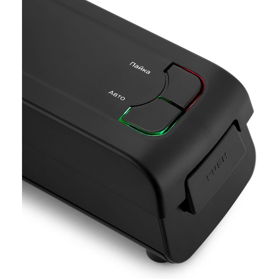 Прибор может работать в 2 режимах. При нажатии кнопки «Авто» вакууматор автоматически откачивает воздух из пакета, а затем запаивает его. А с помощью кнопки «Пайка» устройство запаяет пакет без вакуумирования.
